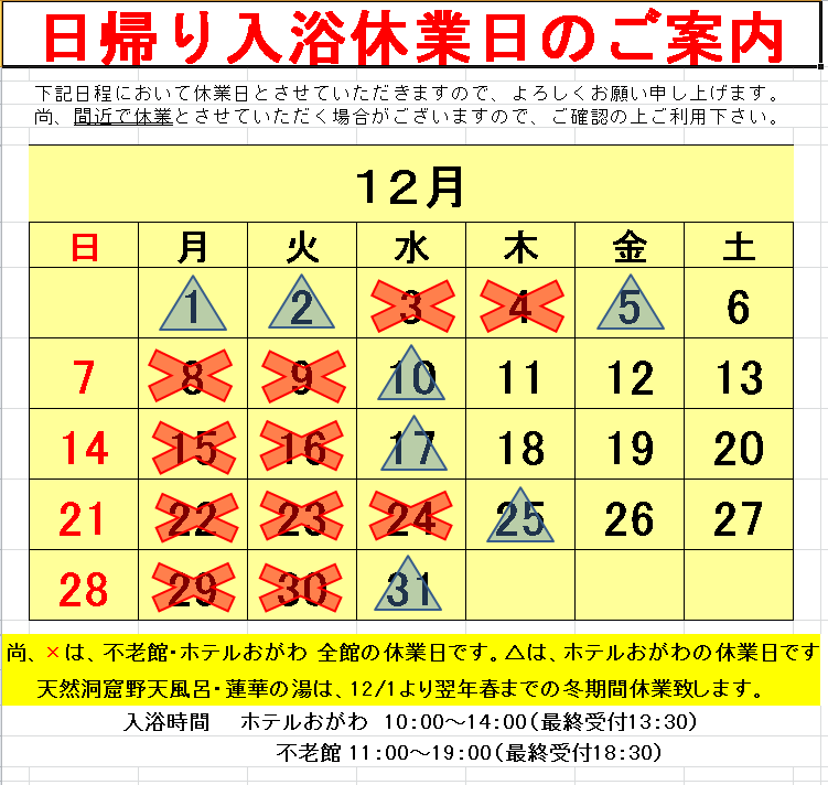 12月の日帰り入浴について